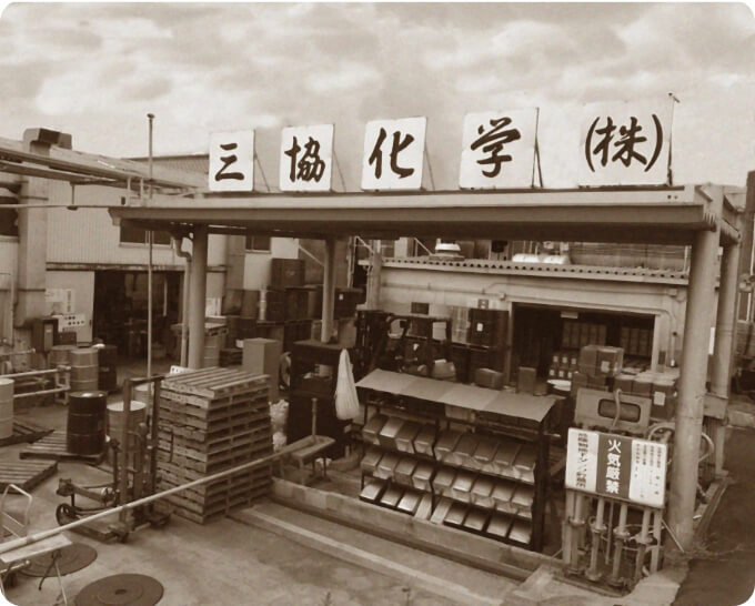 1947年、楽器や家具向けの木工用塗料や塗料用希釈剤(シンナー)の製造会社として、愛知県名古屋市東区で創業しました。1953年には、生産量の拡充を図るために工場(現:守山工場)を愛知県名古屋市守山区に移設し、1957年には「三協化学株式会社」として法人登記しました。その後、弊社の製品の需要が徐々に拡大したことに伴い、3~4年に一度の頻度で守山工場の設備や敷地を拡大し、増産体制を整えていきました。