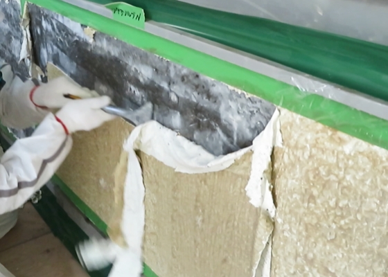 - 建物の外装に使用されているアスベスト含有仕上塗材(リシン・タイル・スタッコ)や外壁用接着剤、陶磁器タイル用アクリルシリコン樹脂などの剥離。